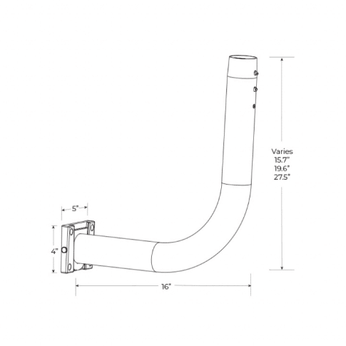 - Wedge-shaped base attaches to wall, eliminating toe-kick hazards from floor bases